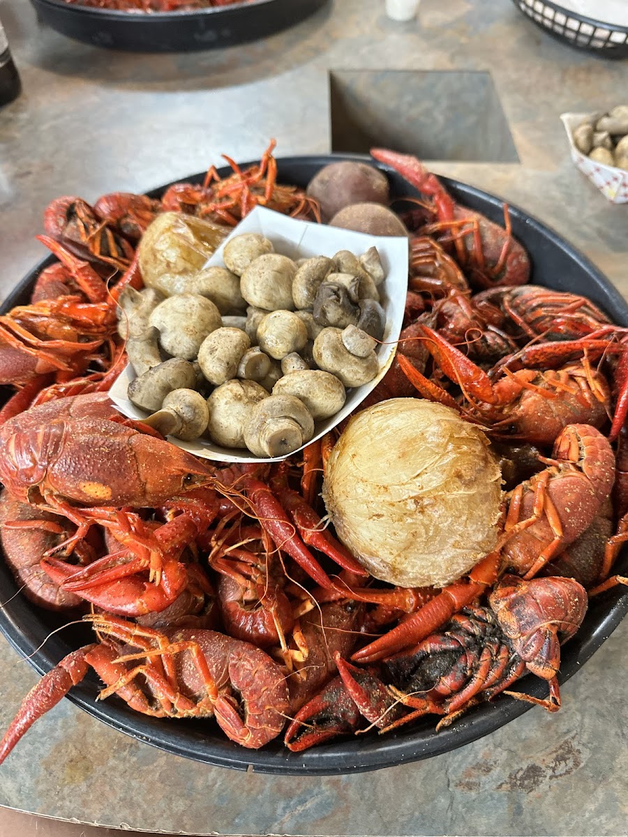 We were in town for the voodoo hockey game so we looked online and found this place. The mushrooms and pork skins were amazing. The crawfish was pretty good but I wasn't a huge fan of the dusting and they were pretty hard to peel. Other than that, everything was fantastic, prices are very reasonable. We had pork skins, fried mushrooms and 3lbs of crawfish for $38. Service was amazing, everyone was friendly and atmosphere was nice. Was much bigger inside than we thought from looking at the front of the building. Definitely worth stopping in if you're in town.